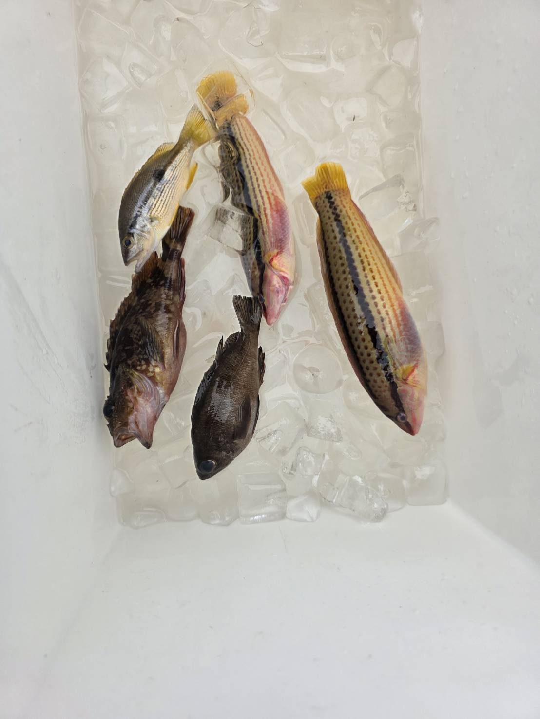 其の後はサシエが付いたままだったので、突堤の風裏に何組か移動して狙って貰うと、ベラやガシラなど5匹ほど釣れた。今回は風に悩まされ厳しい釣りになったが、皆さん最後まで頑張りフカセ釣りの体験をして楽しんで頂いた。