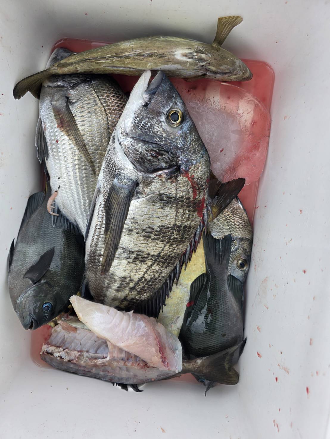 チヌ30センチ~43センチ3匹、アイゴ30センチ~35センチ4匹、グレは23センチ~25センチ4匹と退屈せずに楽しめた釣行だった。
