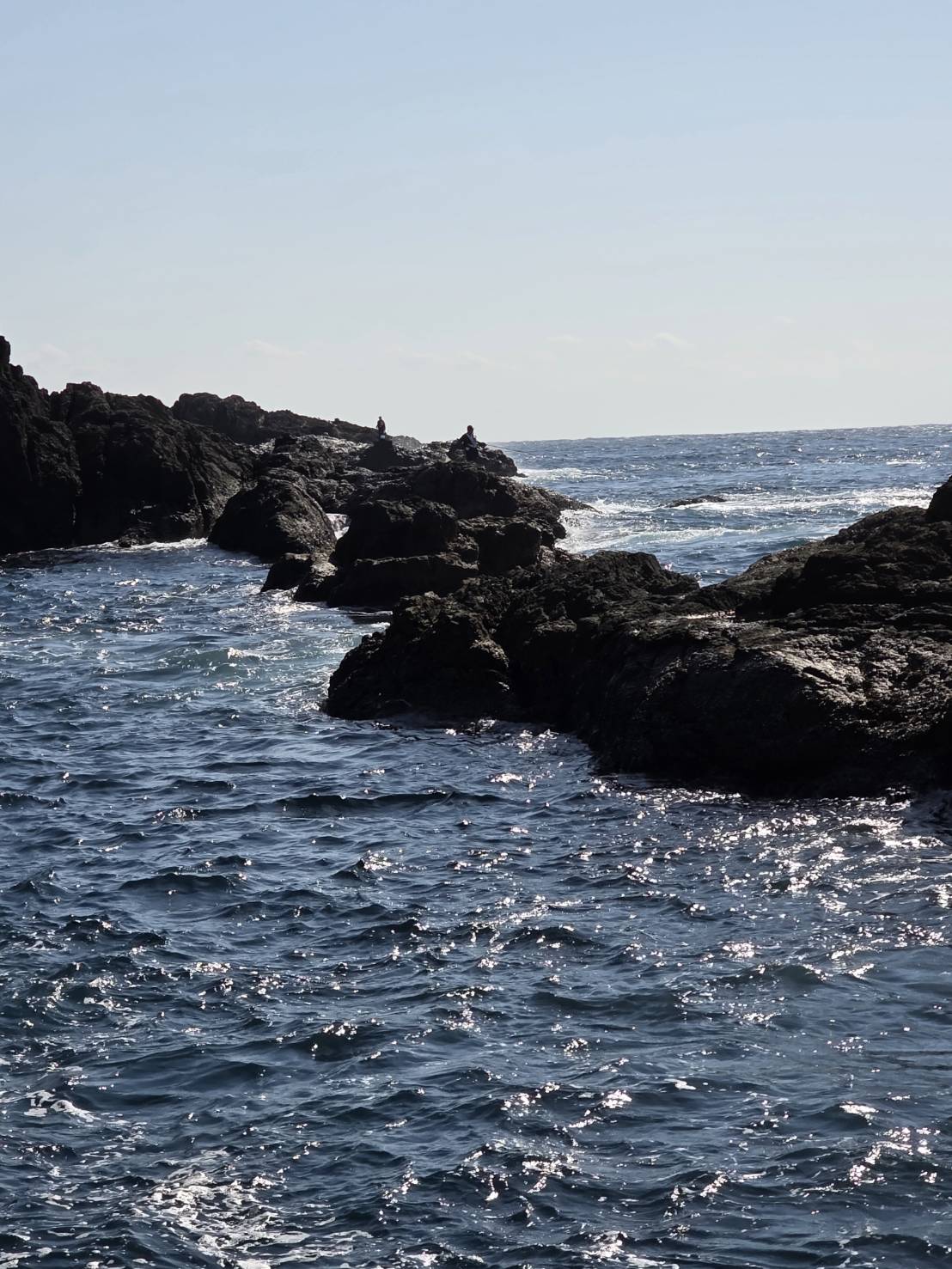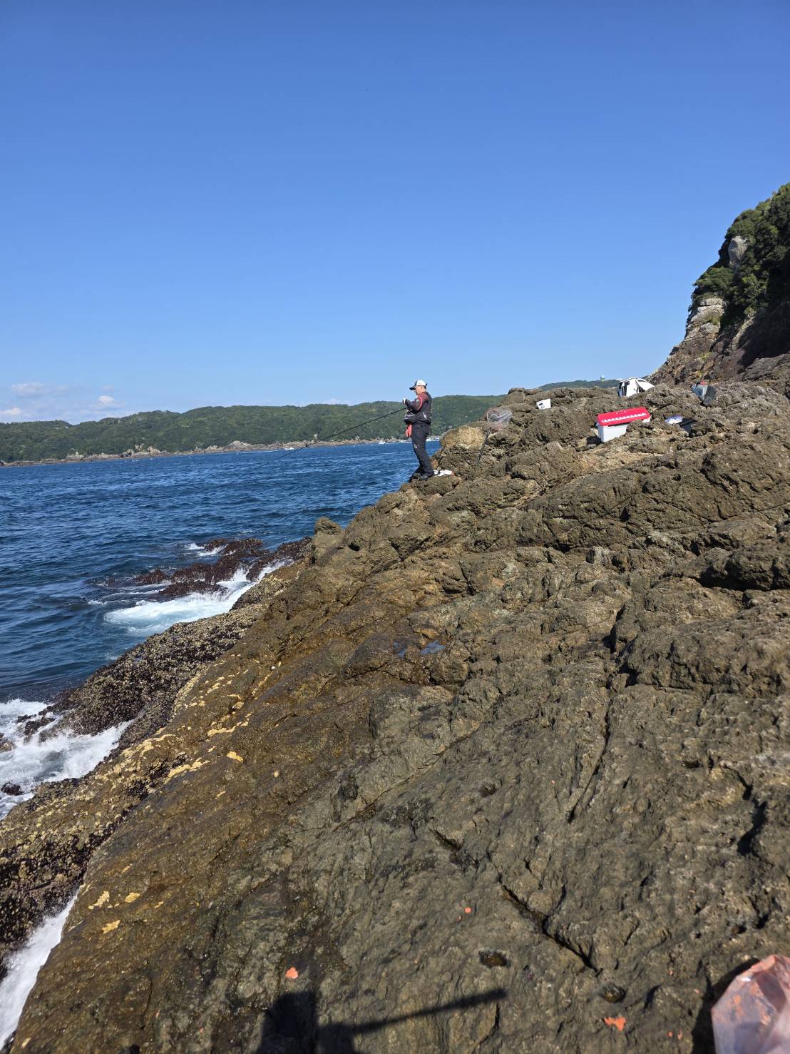 渡船に乗り込むと湾内では、35センチ~45センチ級もボチボチ釣れていた。この日はウネリが高くて一級磯は上がれず、比較的ウネリの影響を受けない安全な磯となった。水温がまだ22,7度と高くもう少し低下すれば本格的なグレ釣りシーズンとなるだろう。