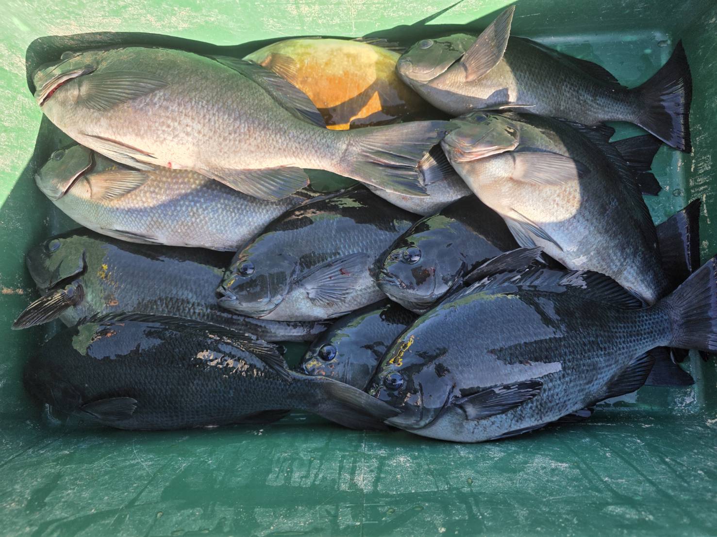 今度は今日一の当たりで底に見えていた大型キツか、大型アイゴかグレの引きでは無かった。でも何とか取り込もうと丁寧なやり取りで浮かしたのは何と尾長グレ41センチで「ヤッター!!」と感動する。