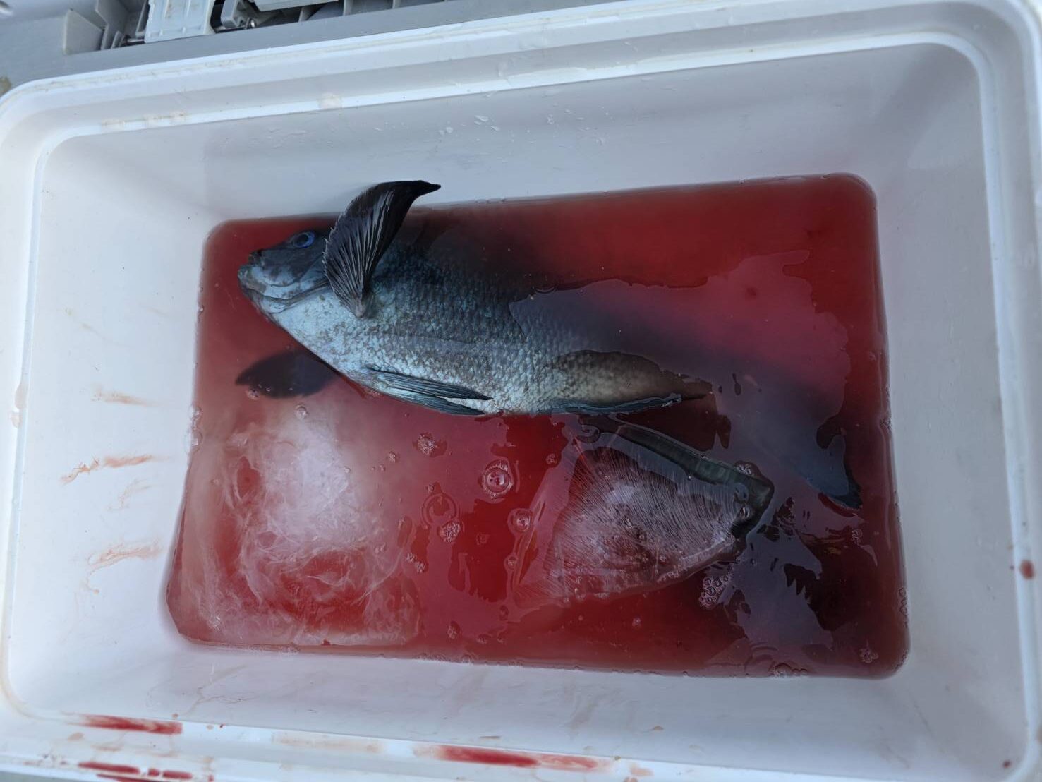 さらに、連続で豪快な引きに竿の角度を保つため、レバーブレーキで調節しながら、強引に浮かしたのは45センチの大物グレに大満足する。弁当船が来るまでの間に35センチ以上を5匹を掛けたが、1月4日の釣行の魚体と比べると一気に脂が乗り肥えて見応えがあり値打ちも違った。