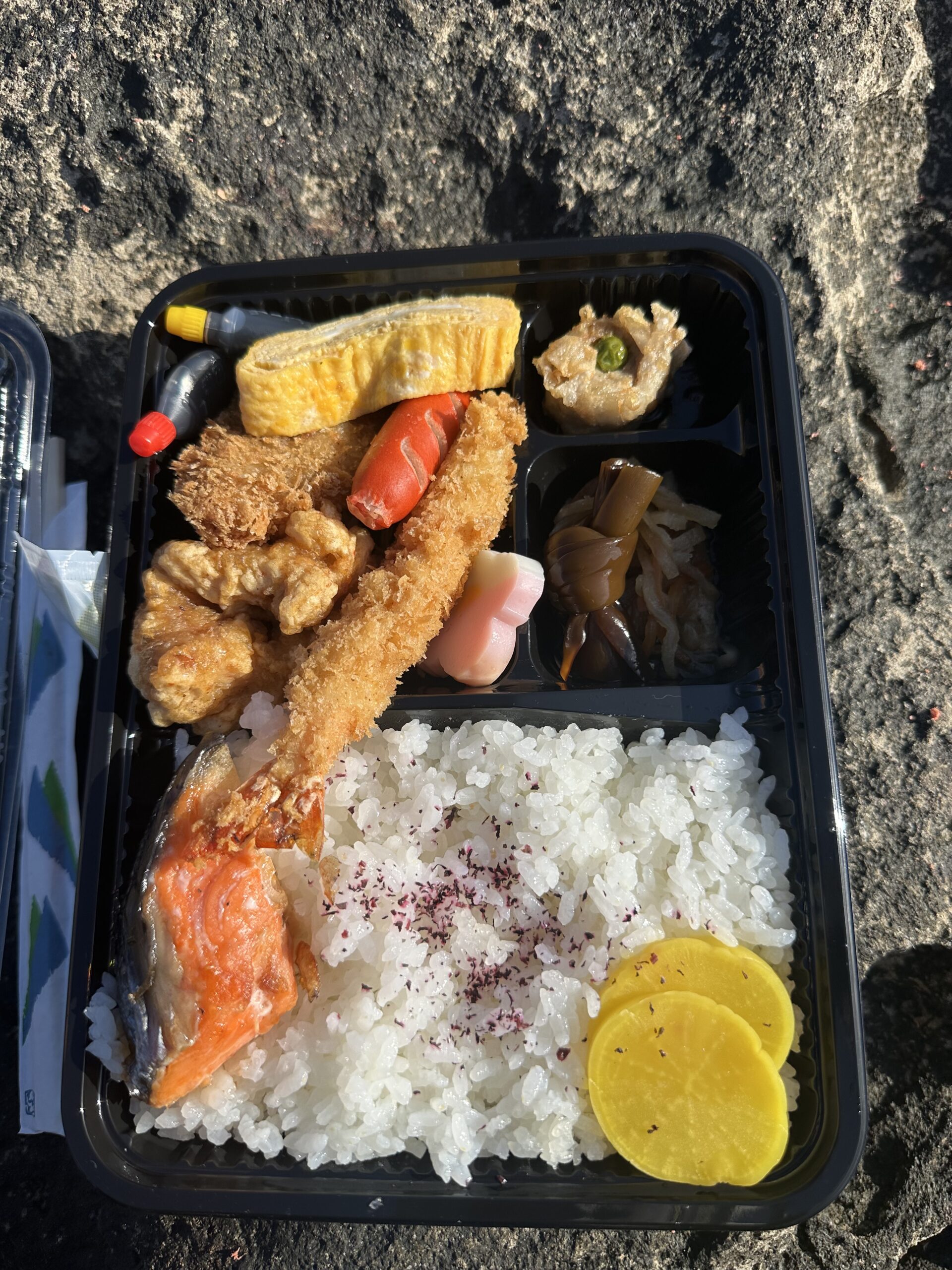 磯の上での弁当は最高に美味しい。