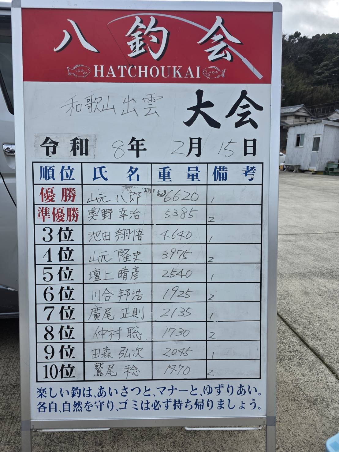 2月15日、和歌山県串本出雲で【八釣会グレ釣り大会】を開催した。