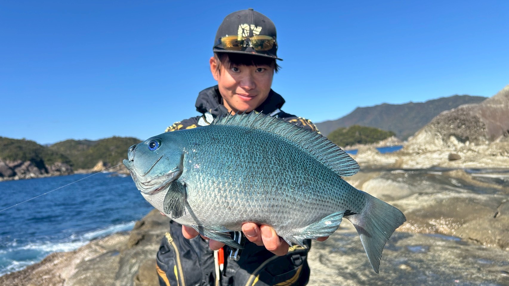 型狙いで遠投距離を伸ばし60m程遠投。待望の良型グレも出ました!!