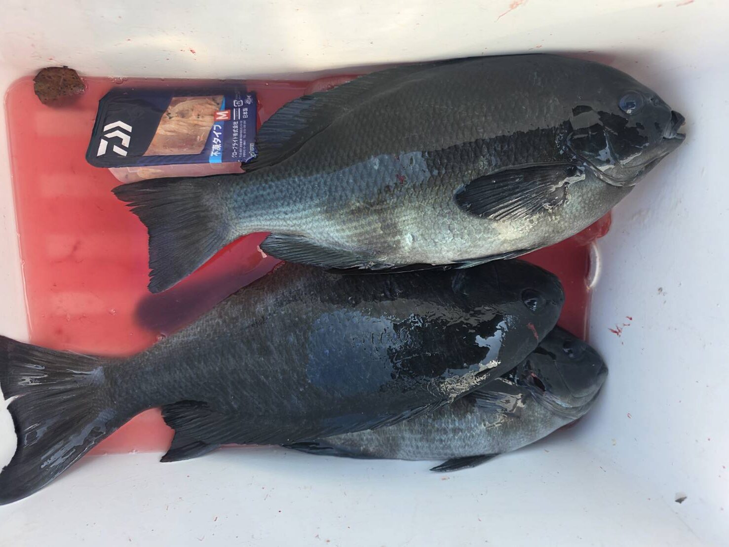 お世話になった渡船は裏廻りの17番、桃オチは強風で行けずノコギリに2人で上がった。私は船付きで竿を出すと上り潮は速く、強風で仕掛けが引っ張られて馴染まない。ジンタン4号を2個打って潮に乗せて流すと25センチ程の尾長グレが2匹食った。